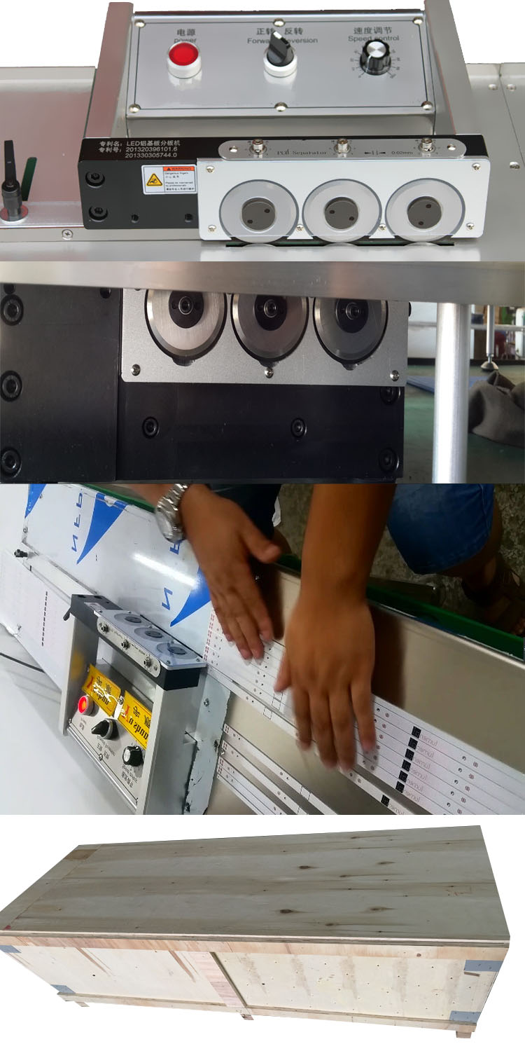 1. With unique cutting method , the circuit board is cut by six blades . It is a group composed of one upper and one lower blade , and is also a cutting unit. There are A, B, C, three groups. The whole cutting process is divided into three stages from group A blade which cut 40% board then to the group B blade knife cut through groove cutting by group A to complete another 40% .the last 20% is cut by group C blade and finishing. because each cutting volume is small, the stress produced during the cutting progress declined by more than 80% compared with the traditional cut off at a time.