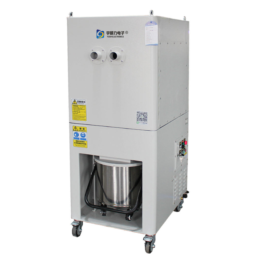The laser engraving machine vacuum cleaner YUSH T series is an industrial-grade special vacuum cleaner supporting automation equipment. The machine voltage is 380V, and the power of 4KW-7.5KW can be selected; the laser engraving machine vacuum cleaner can work continuously for 24 hours. Standard local/remote control switch function, which can be fixedly installed on large equipment as a fixed vacuuming device, and can be linked with the equipment. The total filtration area of the 6 filters of the laser engraving machine vacuum cleaner is 18M², the filtration accuracy is 0.3μm, and the programmable pulse cleaning design can set the automatic pulse cleaning interval of the machine according to the working conditions.